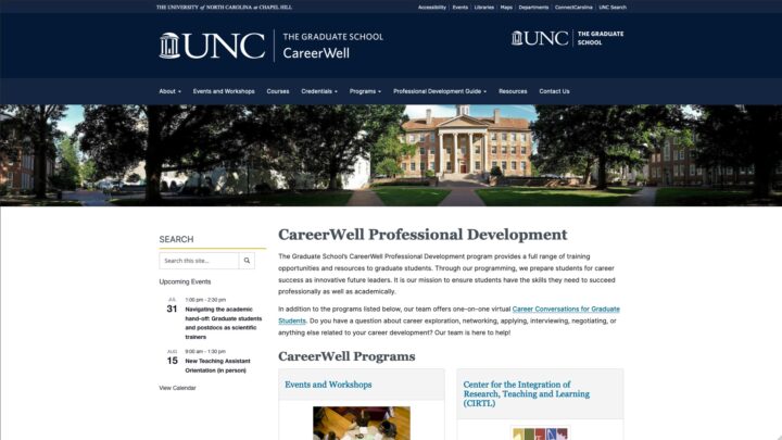 The Graduate School’s CareerWell Professional Development program provides a full range of training opportunities and resources to graduate students. Through our programming, we prepare students for career success as innovative future leaders. It is our mission to ensure students have the skills they need to succeed professionally as well as academically.